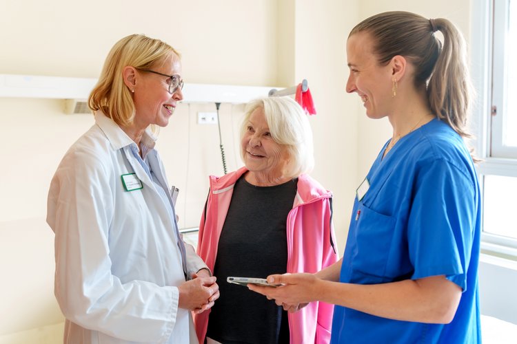 Zu unserem multiprofessionellen Team gehören (Fach-)Ärzt*innen, spezialisierte Pflegende sowie Physio- und Ergotherapeut*innen, Logopäd*innen, Neuropsycholog*innen, Sozialarbeiter*innen Ernährungsberater*innen, Seelsorgende und der ehrenamtliche Begleit- und Hospizdienst. Sie alle arbeiten zum Vorteil der Patient*innen eng zusammen. Deren Angehörige im Umgang mit dem alten Menschen zu beraten und anzuleiten, ist ein wichtiger Bestandteil der Therapie.