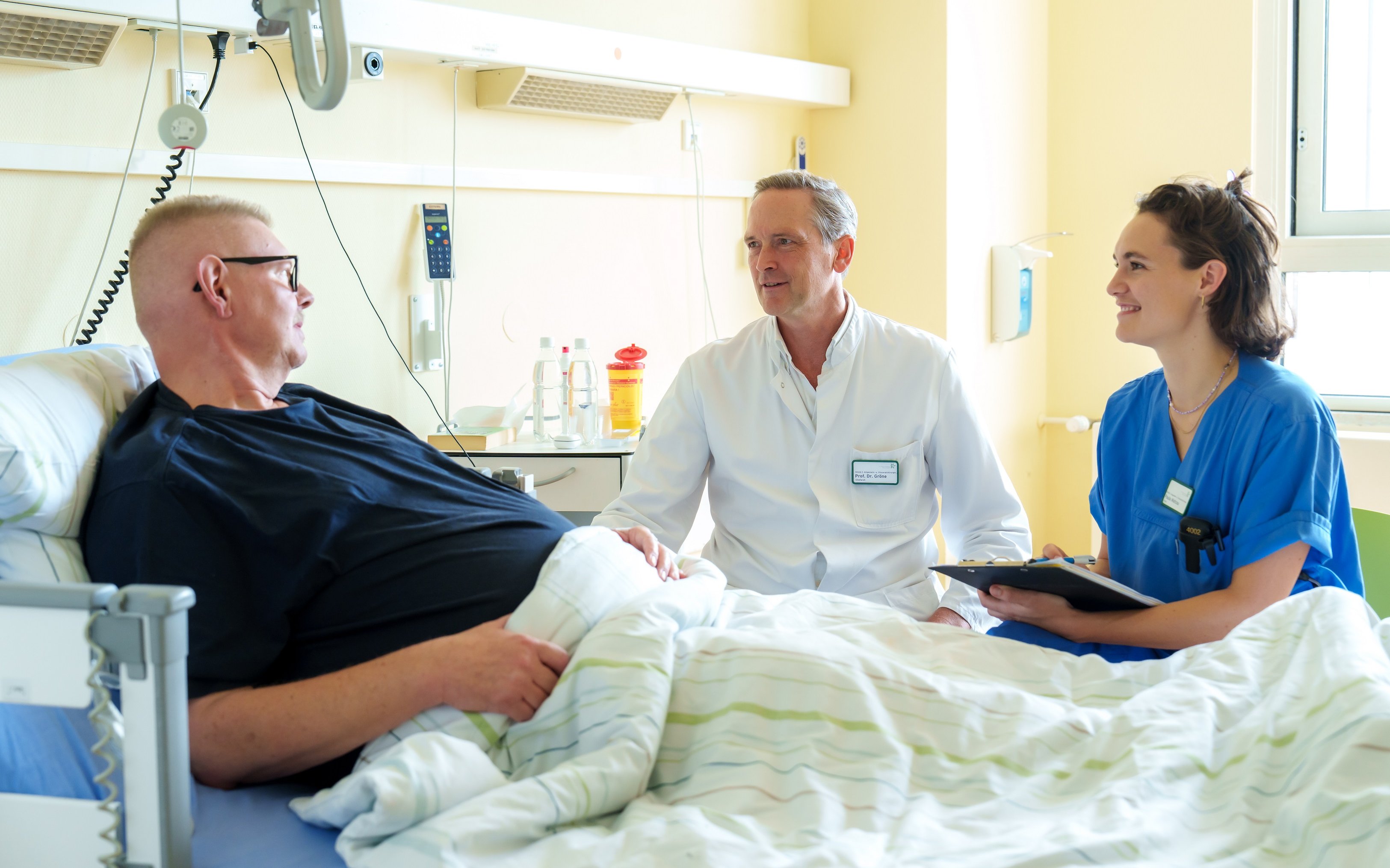 Wunden heilen schnell, die Seele braucht manchmal länger. Ärztinnen und Ärzte und Pflegende stehen daher stets für Gespräche zur Verfügung. Ebenso sind die Mitarbeitenden des Sozialdienstes, der Seelsorge, der Physiotherapie, der psychoonkologischen Beratung und der Ernährungsberatung jederzeit ansprechbar.