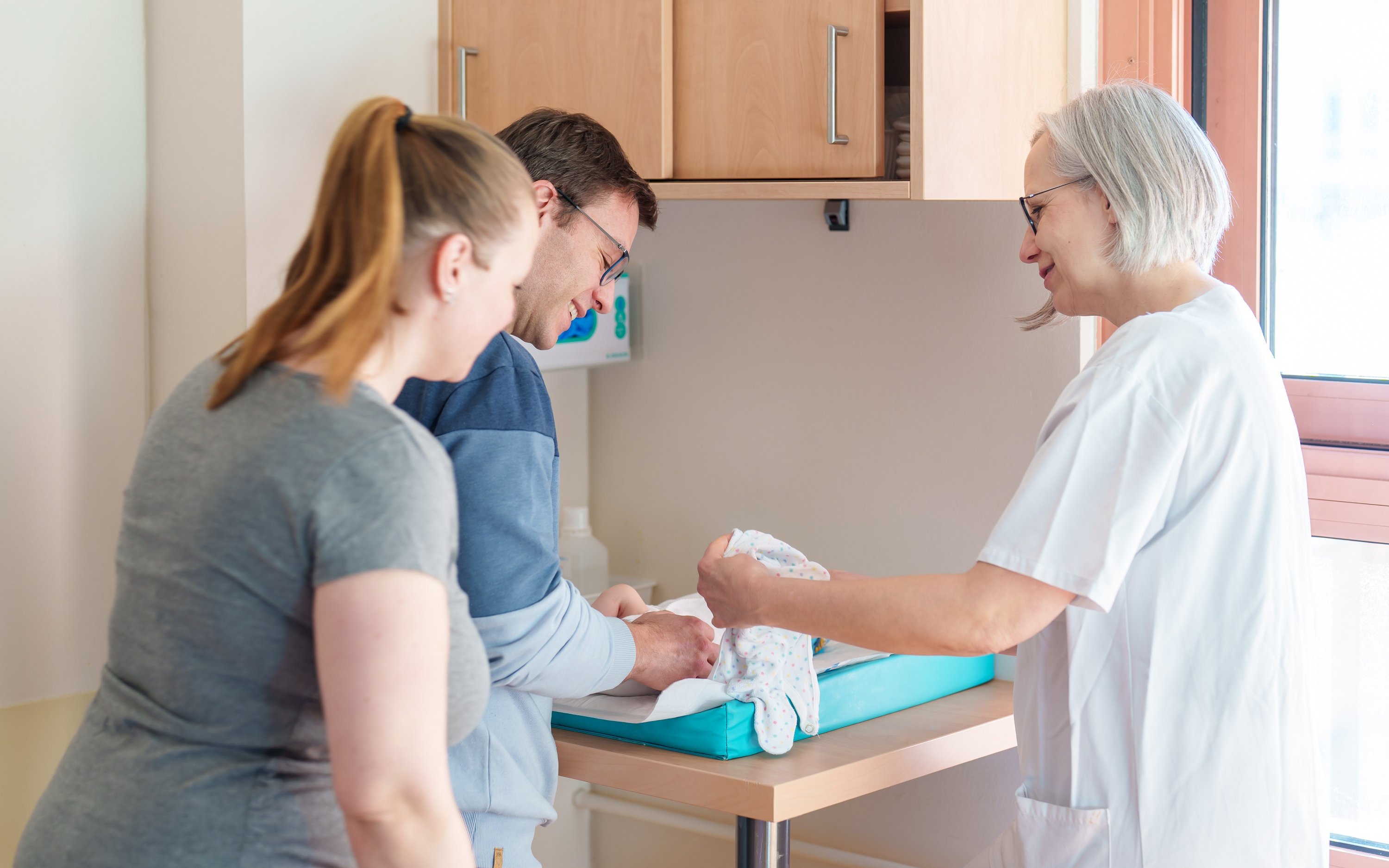 Die kinderärztliche Versorgung wird durch die permanent anwesenden Kinderärzt*innen im Rahmen unseres Perinatalzentrums gesichert. In der Regel führen wir die U2-Untersuchung des Kindes vor der Entlassung durch. Routinemäßig können das große Stoffwechselscreening sowie ein Hörtest beim Kind während des Aufenthaltes im Hause erfolgen. Bei bestimmten Indikationen werden auch Ultraschalluntersuchungen der Hüfte vorgenommen.