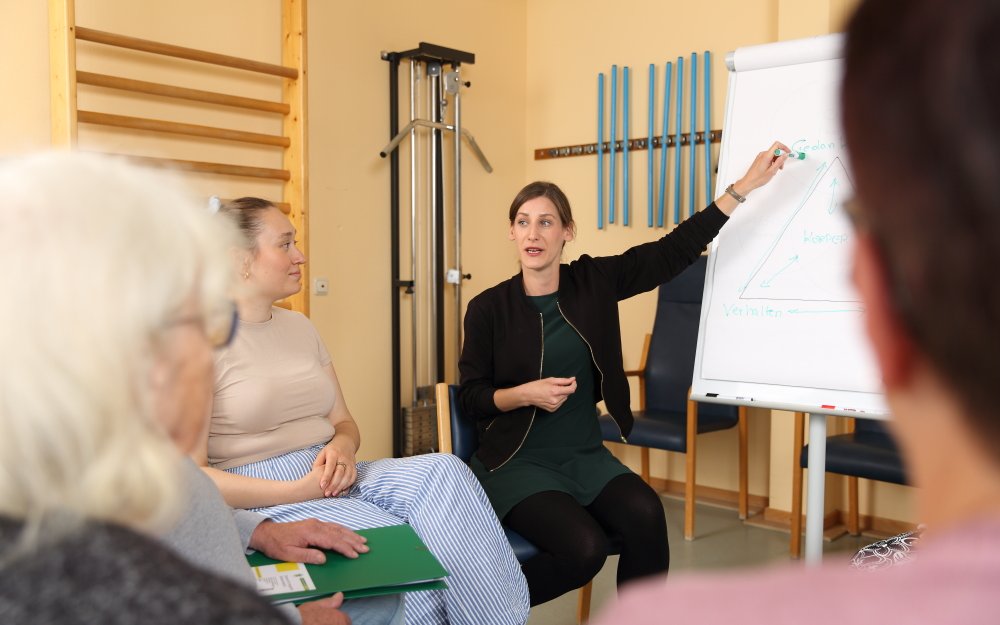 Auf Basis der Untersuchungsergebnisse stellen die Expert*innen die Schmerzdiagnose und entwickeln ein bio-psycho-soziales Schmerz-Modell. Es hilft Patient*innen, die Erkrankung und ihre Ursachen zu verstehen.