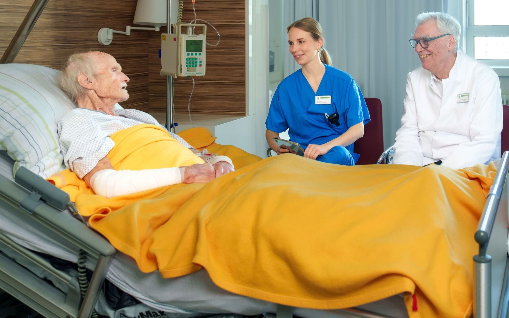 Ziel der Palliativmedizin ist es, die Lebensqualität von Patientinnen und Patienten mit einer unheilbaren Erkrankung nach deren individuellen Wünschen und Bedürfnissen zu erhalten und, wenn möglich, zu verbessern. Auf Basis christlicher Werte und zugleich konfessions-offen behandelt das speziell geschulte, berufsgruppenübergreifende Team aus Medizin, Pflege, Physiotherapie, Sozialdienst, Psychotherapie und Seelsorge Schwerstkranke und Sterbende. Im Mittelpunkt der Arbeit steht die ganzheitliche und würdevolle Begleitung unserer Patient*innen. Dazu gehören die Linderung von Schmerzen und anderen Beschwerden wie Atemnot oder Übelkeit, aber auch der Umgang mit Angst und Trauer sowie psychosoziale und spirituelle Unterstützung. Bei der Betreuung spielen Angehörige und Freunde eine wichtige Rolle. Für sie gibt es daher auch die Möglichkeit, im Patienten-Zimmer zu übernachten.