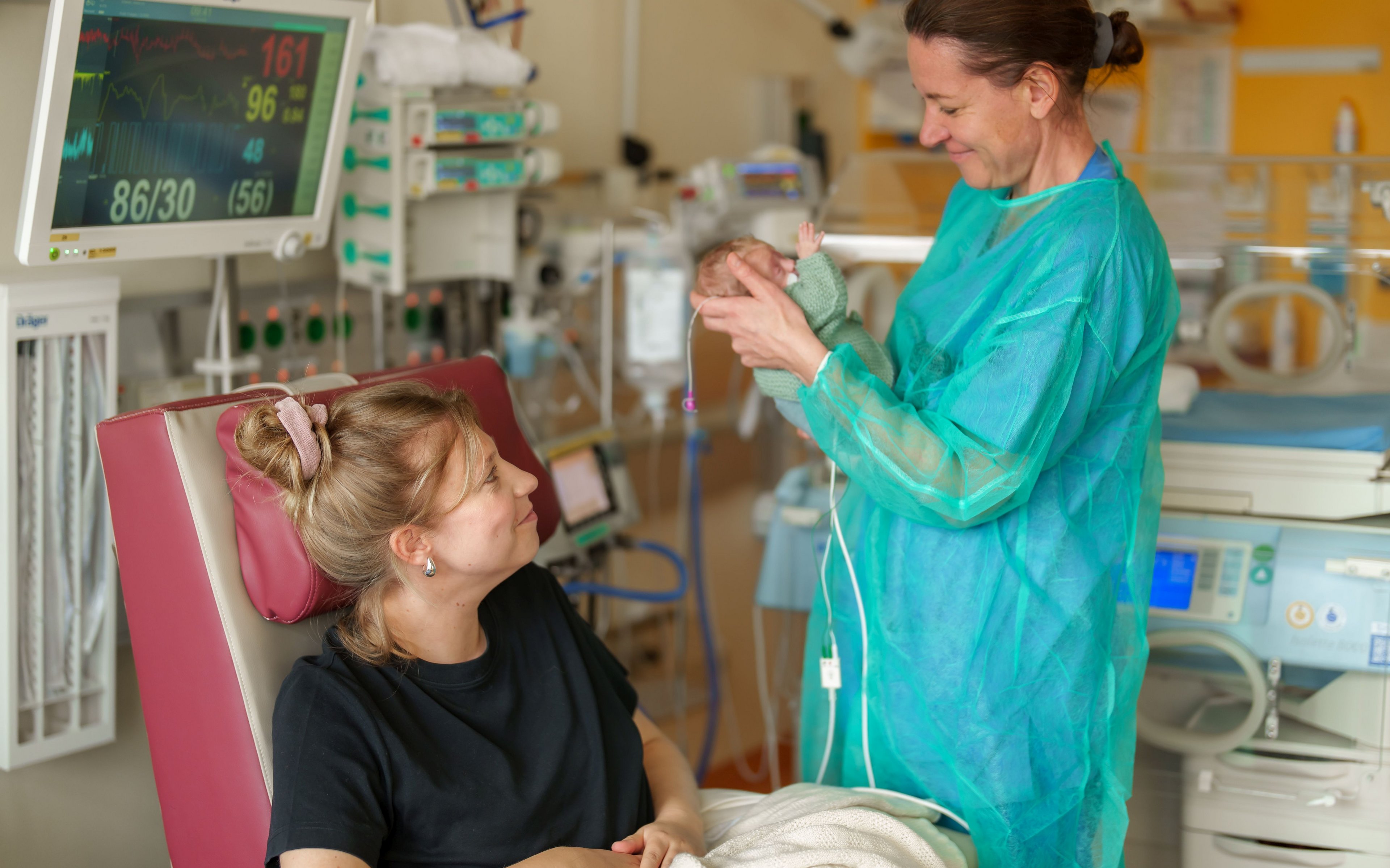 Rooming-In ist bei uns selbstverständlich, denn vor allem schwer kranke Neugeborene und Frühgeborene brauchen die intensive Nähe zu ihren Eltern.